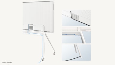 Flyttbart golvstativ för TCL A TV. 360-löstagbara hjul gör att du enkelt kan flytta runt TV:n. Kommer med inbyggd kabelhantering och en förvaringshylla på baksidan.Läs mer om produkten