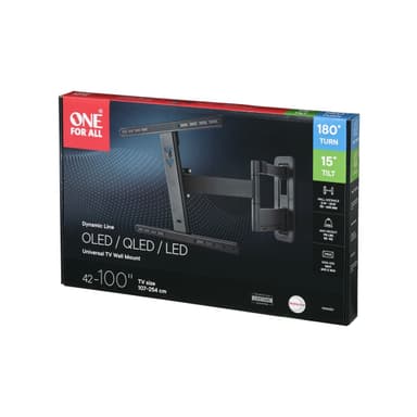 Det här One For All tv-fästet med lutnings- och vridningsjustering är lämpligt för tv-apparater från 42 till 100 tum som är kompatibla med VESA-storlekar upp till 600 x 400. Allt fästmaterial levereras tillsammnans med fästet för enkel montering.Läs mer om produkten