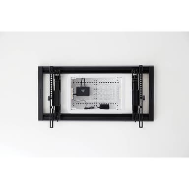 Väggfästet har en öppen design vilket innebär att det kan monteras direkt över eluttag och mediaboxar. Tack vare väggfästets stora möjligheter till att vridas och vinklas så bidrar detta till att kablar enkelt kan nås och korrigeras, trots att tv:n är monterad på fästet. Efter montering är det även enkelt att justera både höjden och nivån av tv:n.