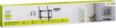 Det plana väggfästet håller TV: n elegant platt och platsbesparande på väggen med endast 49 mm och kan också lutas upp till 12°.