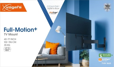 Vogels COMFORT Full Motion+ OLED TV väggfäste TVM3665 är ett perfekt TV-väggfäste för alla interiörer. Det har 20° lutning och3 pivoter med full rörelse, enkelt frigöringslås, medföljande kabelklämmor samt skyddslappar.Läs mer om produkten