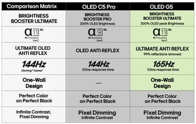 OLED C5 Pro med Brightness Booster Pro tar ljusstyrkan till en helt ny nivå, och är optimerad för fantastiska bilder och levande färger. Med upp till 165 % högre ljusstyrka än standard-OLED förbättrar den HDR-innehåll och förhöjer varje bildruta, och levererar anmärkningsvärd kontrast och skärpa, samtidigt som den är energieffektiv och har en överlägsen bildkvalitet.