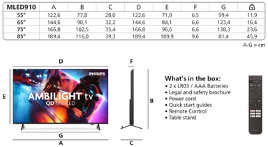 Philips 65" MLED910 4K MiniLED Smart TV är det perfekta valet för att titta på dina favoritfilmer eller TV-program eller spela dina älskade videospel. P5 Perfect Picture Engine och MiniLED-teknologi med Quantum Dot, Dolby Vision och Dolby Atmos arbetar outtröttligt för att ge otrolig bild- och ljudkvalitet. Ambilight-teknologin hjälper din TV att nå bortom sin ram och ger en unik upplevelse. Det smarta TITAN-operativsystemet gör det enkelt att bläddra bland ditt innehåll, och med ALLM och VRR får du den spelkant du behöver.