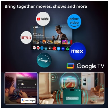 Inbyggd Google Assistant Kan du inte hitta fjärrkontrollen? Använd helt enkelt din röst eftersom denna TV kommer med inbyggd Google Assistant. Hitta all underhållning och titta på filmer, program på streamingtjänster, använd den för att söka efter rekommendationer, samt kontrollera dina andra smarta hemenheter. Även kompatibel med Amazon Alexa.