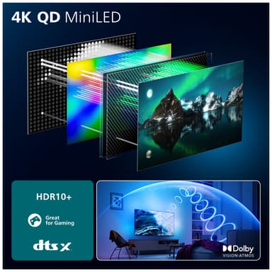 Fördjupa dig i den hisnande bildkvaliteten hos Philips 85-tums MLED910 4K MiniLED Smart TV. P5 Perfect Picture Engine med Dolby Vision och Atmos garanterar en audiovisuell upplevelse som du sent kommer att glömma.Läs mer om produkten