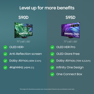 Samsung 55" S90D 4K OLED Smart TV låter dig titta på dina favoritfilmer i otrolig detalj tack vare dess OLED-teknik, 4K ultrahöga upplösning, Dolby Atmos och FreeSync-stöd, vilket resulterar i en underbar tittarupplevelse.Läs mer om produkten