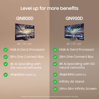 Samsung 75" QN800D 8K Neo QLED Smart TV erbjuder fantastisk visuell kvalitet tack vare Quantum Matrix-tekniken Pro, Neo Quantum HDR 8K Plus, Dolby Atmos och FreeSync Premium Pro vilket resulterar i en hisnande tittarupplevelse.Läs mer om produkten