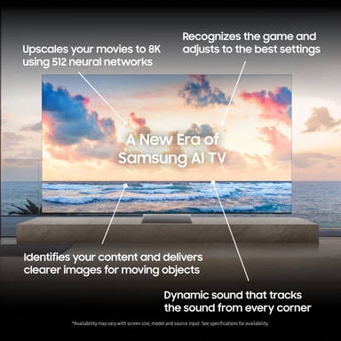 NQ8 AI Gen3-processor Samsungs kraftfulla NQ8 AI Gen 3-processor använder 512 AI neurala nätverk för att uppskala innehåll till 8K för detaljer på hög nivå, raffinerade färger och kontrast till omgivningen. Processorn analyserar och anpassar både bild och ljud beroende på vilken typ av innehåll du tittar på eller spelar. AI Motion Enhancer Pro använder de neurala nätverken för att göra alla föremåls rörelser skarpare och jämnare.