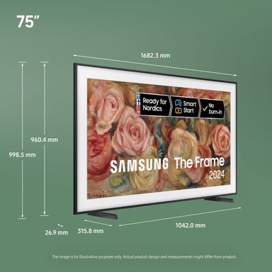 Samsung 75" The Frame 4K QLED Smart TV kompletterar ditt hem med sin design och konstdisplay samtidigt som du får en uppslukande tittarupplevelse tack vare 4K-upplösning, QLED-teknik, HDR och Dolby Atmos-stöd.Läs mer om produkten