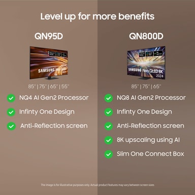 Neo QLED och Quantum Matrix Technology använder en Mini LED-ljuskällor för fantastisk precision i nyanser och kontraster. AI justerar även ditt innehåll för klara färger och djup kontrast, även på ljusa sommarkvällar.