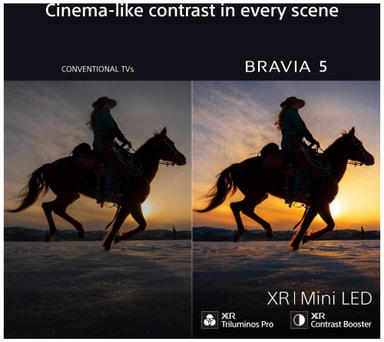 Sony 75" Bravia 5 4K Mini-LED smart-TV erbjuder biografkänsla hemma med avancerad teknologi och virtuellt surroundljud. Perfekt för gaming, garanterar en imponerande upplevelse.Läs mer om produkten