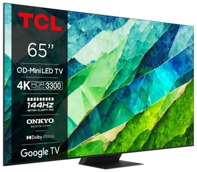 TCL C85-serien kombinerar Full Array 6:e generationens Mini LED, QLED PRO, 4K HDR Premium 3300, 144Hz Motion Clarity Pro för kraftfullt exakta kontraster, skarp och färgstark HDR-bildkvalitet.Läs mer om produkten