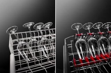 Ömtåliga glas kan inte diskas säkrare än i denna maskin tack vare SoftGrip och SoftSpikes som skyddar glasen och håller dem ordentligt på plats.
