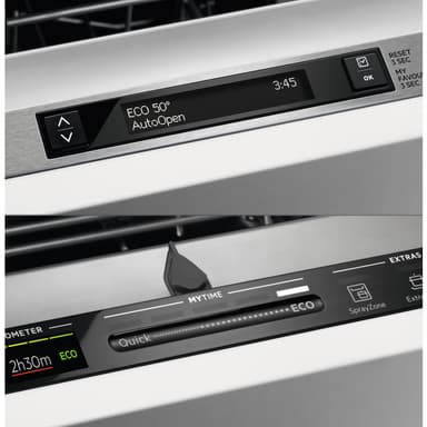 Ansvarsfulla val på ett enkelt sätt. Använd QuickSelect-touchskärmens glidreglage för att välja din önskade cykeltid och låt Ecometer guida dig till det mest hållbara programmet för att spara både energi och vatten med de gröna staplarna.