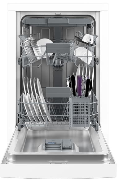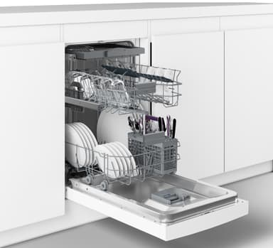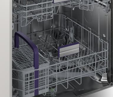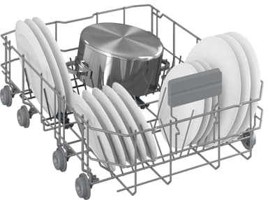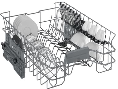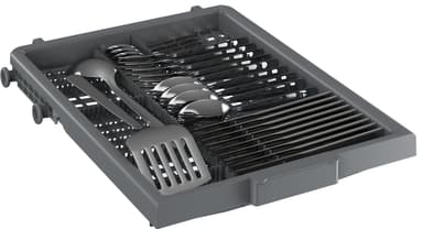 Genom att använda bestickslådan högst upp på maskinen får du mer utrymme när maskinen är full. Vissa av maskinerna har både bestickkorg och besticklåda. Det ger mer flexibilitet för större fat, och du kan enkelt ta bort bestickkorgen nedan för mer plats för tallrikar, kastruller och kastruller.