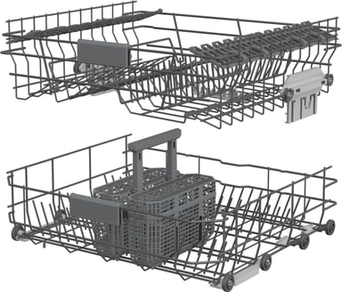 Den här flexibla och rymliga bestickkorgen är helt anpassningsbar till diskmaskinens inredning. Du kan använda den som en enkel eller dubbel enhet, beroende på hur du har staplat andra föremål.