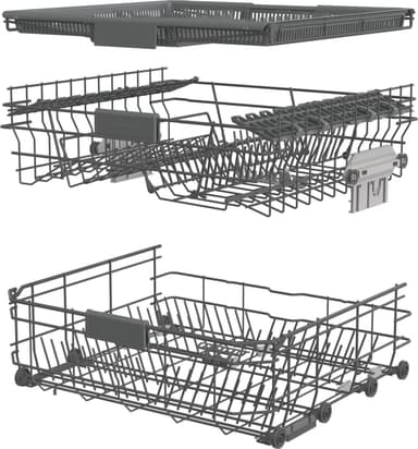 Nu kan du enkelt fylla och tömma diskmaskinen tack vare de smart utformade flexibla korgarna. Den höjdjusterbara övre korgen gör att du får plats med alla högre kastruller. De vikbara tallriksstöden i den nedre korgen ger plats för även de största grytorna, medan en särskild tredje korg är avsedd för bestick och andra köksredskap för att ge bästa möjliga disk- och torkresultat.