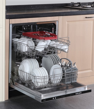 Kapacitet Diskmaskinen har 14 kuvert samt bestickkorg och bricka.