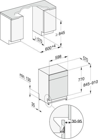 Diskmaskinens lucka öppnas automatiskt i slutet av programslutet och lämnar en liten öppning. Med extra hjälp från fläkten kan därmed fuktig och varm luft transporteras ut från diskutrymmet och även krävande diskgods, till exempel av plast, torkas effektivt. En särskild luftkanal skyddar bänkskivan mot fukt.