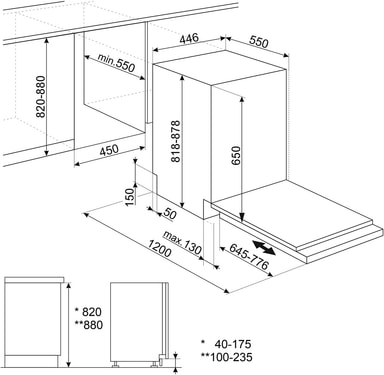 FlexiFit skjutdörr Flexifit-gångjärnssystemet gör att diskmaskinens lucka kan skjutas mjukt, vilket ger frihet att välja mått på panelen och sockeln, vars höjd kan variera från 5 till 21,5 cm. Diskmaskinen passar in i det skåp där den är placerad, eftersom luckan och sockeln är nästan helt i linje med varandra, med ett minsta avstånd på endast 3 mm mellan de två.