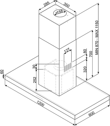 Förbättra luften i köket med Smeg Neutral fläktkåpa KI120XE. Den har en filtreringskapacitet på 529 m3/h, 3 hastighetsinställningar, 1 intensivläge, samt 4 energisnåla LED-lampor. Utöver det har den tvättbart fettfilter.