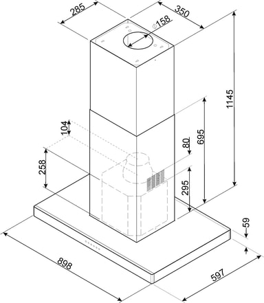 Kolfilter Fläktkåpan passar med 1 x FLT6 kolfilter (medföljer ej, säljes separat).