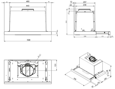 Filter Köksfläktens teleskopiska kåpa ger en stor effektivitet och förbättrad filtrering medan aluminiumfiltret avlägsnar smuts och fett.