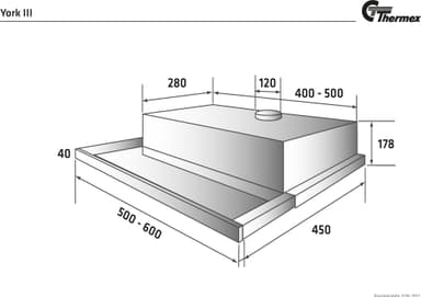 Thermex Yellow Line köksfläkt YORKIII50LUX hjälper dig bli av med ånga och fettrester med en kapacitet på 390 m3/h. Den 50 cm breda inbyggda köksfläkten har 3 hastighetsinställningar som låter dig justera intensiteten samt stark LED-belysning.Läs mer om produkten