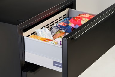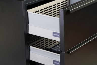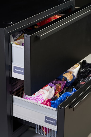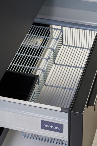 Norcools inbyggda fryslåda 60000008 har en elegant design med en nettokapacitet på 104 liter, automatisk avfrostning, en digital termostat, ett dörrlarm och LED-belysning.Läs mer om produkten