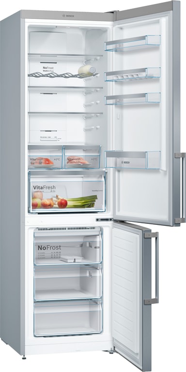 Bosch Series 4 KGN397LEQ kyl/frys har NoFrost-teknik, VitaFresh-system och elegant design i rostfritt stål för modern, effektiv matförvaring.Läs mer om produkten