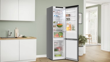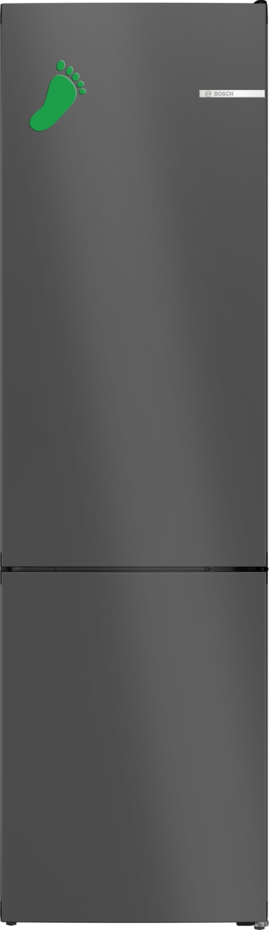 Denna kombinerad kyl/frys från Bosch är tillverkad av noggrant utvalda material, inklusive CO₂-reducerat stål, aluminium, biobaserat skum och plast, med egenskaper som verifierats genom internationellt erkända standarder.*