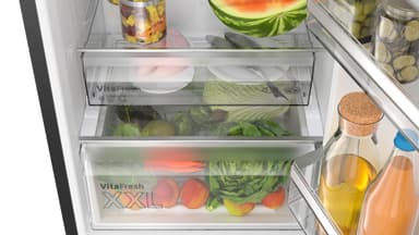 Bosch KGN39VXCT kyl/frys bländar med sin No Frost-teknik, VitaFresh-system och eleganta svarta inox-design för moderna kök.Läs mer om produkten