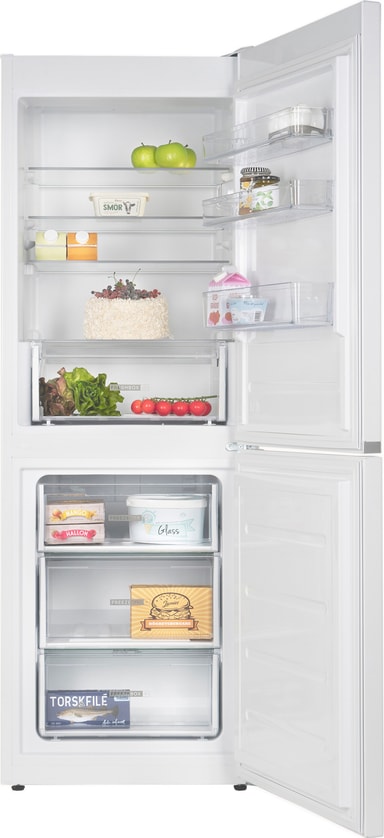 Kylskåpskapacitet Kylskåpet på 197 liter ovanpå har fyra hyllor och en grönsakslåda.