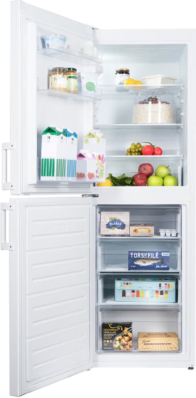 Design Denna kompakta och praktiska kyl/frys kommer i vitt med två vändbara dörrar. Den har robusta, externa handtag som är lätta att greppa.
