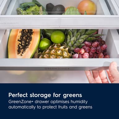 • GreenZone+-lådan justerar luftfuktigheten för att skydda frukt och grönsaker.