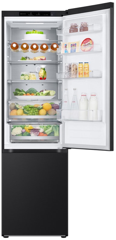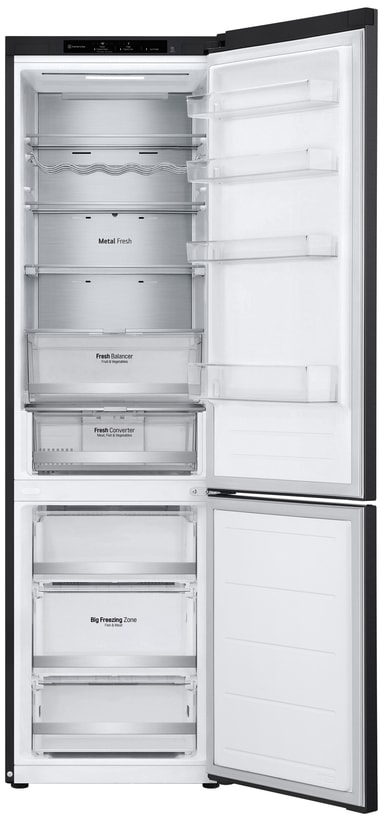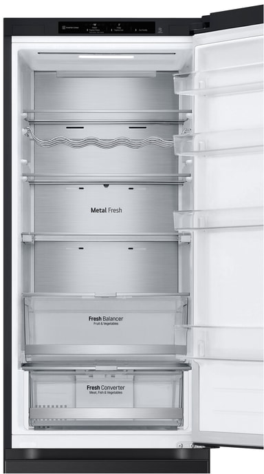 Den bakre väggen med metalldekoration ger interiören en tidlös, förstklassig känsla. * Metal Fresh ™ är ett sammansatt ord som härstammar från orden metalllaminerad design applicerad på kallluftventilen och NatureFresh av Linear Cooling and Door Cooling +. * Användningen av metallkomponenter håller inte i sig maten i kylen fräschare.