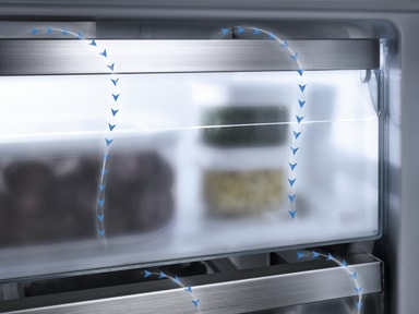 Tack vare NoFrost-systemet behöver du aldrig mer frosta av din frys från Miele. Genom cirkulationskylningen fördelas den kalla, torra luften jämnt, så att det inte kan bildas någon is i innerutrymmet. På detta sätt isar din kyl eller frys inte igen, och lådorna får ingen störande isbeläggning som gör dem svåra att öppna eller stänga. NoFrost ger högsta bekvämlighet vid infrysningen och du slipper den besvärliga avfrostningen – för alltid.