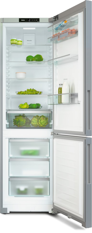 Miele kyl/frys KFN4291AD erbjuder 268 liter kylkapacitet och 103 liter fryskapacitet med DailyFresh, NoFrost och ComfortClean-funktioner, Wi-Fi-anslutning och ett elegant utseende i rostfritt stål för maximal bekvämlighet.Läs mer om produkten
