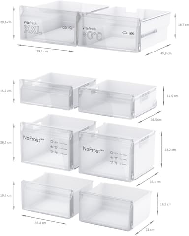 • VitaFresh XXL Pro 0°C: klimatkontrollerade fack gör att dina livsmedel håller sig färska och behåller näringsämnena längre.