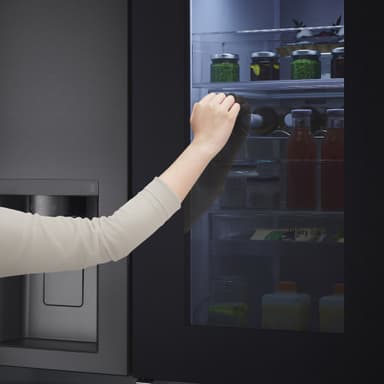 Knacka två gånger och se 23% mer av vad som finns i kylskåpet med den senaste generationen InstaView Door-in-Door ™*. * Jämfört med LG konventionella Side-by-Side InstaViewThinQ ™ (GSX971NEAE).