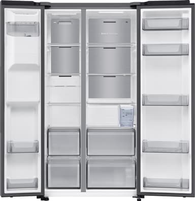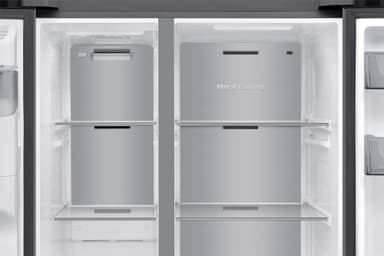 Håll din mat fräsch längre med Samsung Side-by-Side RS70F65KDTEF. Den har en nettovolym på 640 liter och är utrustad med teknologier som NoFrost, SpaceMax och All Around Cooling. Dessutom kan detta kylskåp enkelt styras med SmartThings-appen.Läs mer om produkten