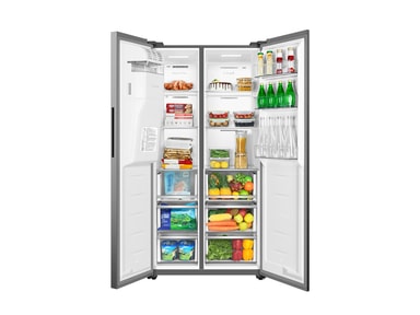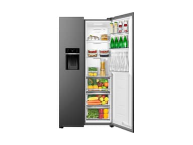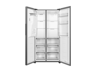 TCL side-by-side RC591SXE1NE erbjuder en elegant design i rostfritt stål med XL-kapacitet, T-Fresh antibakteriell teknik, 3-i-1 ismaskin och automatisk avfrostning för optimal matförvaring och bekvämlighet.Läs mer om produkten