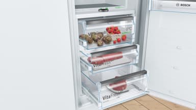 Bosch kylskåp KIF81HOD0 säkerställer optimala förhållanden för alla dina matvaror. Denna inbyggda apparat har en rymlig interiör med 289-l kapacitet, VitaFresh Pro-fack samt en SuperCooling-funktion.Läs mer om produkten
