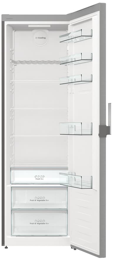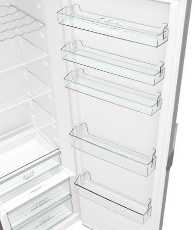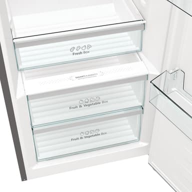 Kylskåp Kylskåpet har en kapacitet på 398 liter, vilket ger gott om utrymme för alla typer av matvaror. Interiören är uppdelad i 6 glashyllor, 2 grönsakslådor och ett färskfack, så att varje matvara har sin plats.