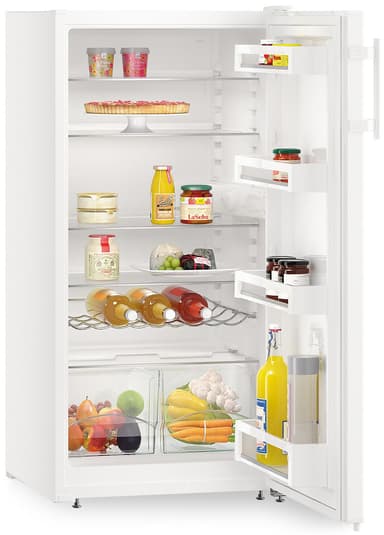 Liebherr-kylskåpet Ke 2350-26 är ett fristående kylskåp med en nettovolym på 213 liter, en vändbar dörr, ett flaskställ och LED-belysning. Det snygga kylskåpet passar sömlöst in i alla köksskåp.Läs mer om produkten
