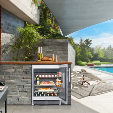 LIEBHERR OKes 1750-26 001, en elegant 213L utomhuskyl i rostfritt stål, erbjuder avancerad kylning, elektronisk termostat och temperaturdisplay. Idealisk för att svalka drycker stilfullt under sommarens grillkvällar och trädgårdsfester.Läs mer om produkten