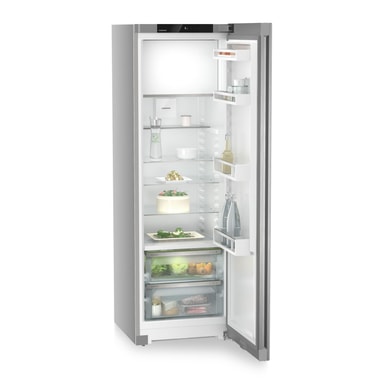 LIEBHERR RBsfd 5221-22 001 kylskåp imponerar med sin eleganta rostfria design, BioFresh-teknik för optimal matförvaring, 185x60cm storlek, elektronisk termostat och rymlig 351L interiör för ett modernt och stilrent kök.Läs mer om produkten