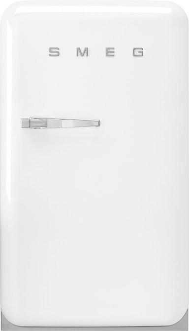 Smeg 50's Style kylskåp FAB10HRWH5 med retrodesign tar inte mycket plats i köket men har ändå en rymlig 135 l-interiör och modern teknik som effektiv LED-belysning och ett enkelt avfrostningssystem. Denna modell är högergängad.