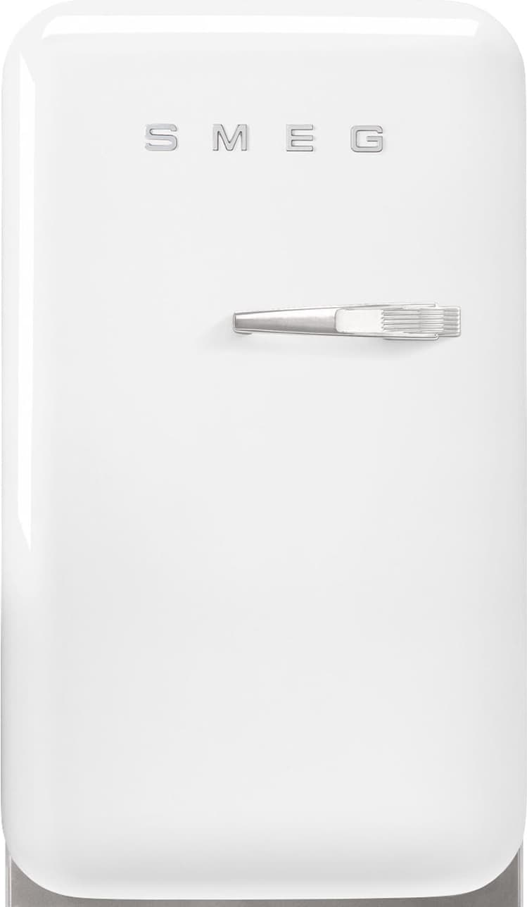 Smeg Kylskåp FAB5LWH6, ett elegant vitt 40,4 cm kompakt kylskåp, utrustat med två hyllor, justerbara fötter och en tyst drift på 36 dB, perfekt för stilren och effektiv kylning i mindre utrymmen.Läs mer om produkten