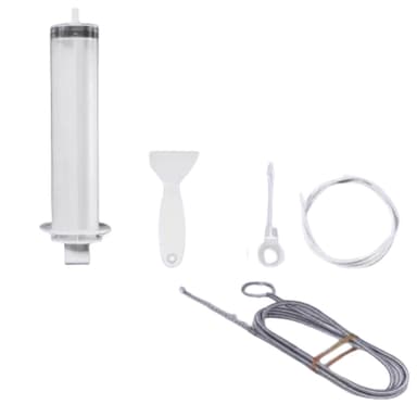 Nål: Nålen möjliggör exakt rengöring och komma åt trånga igensatta delar.